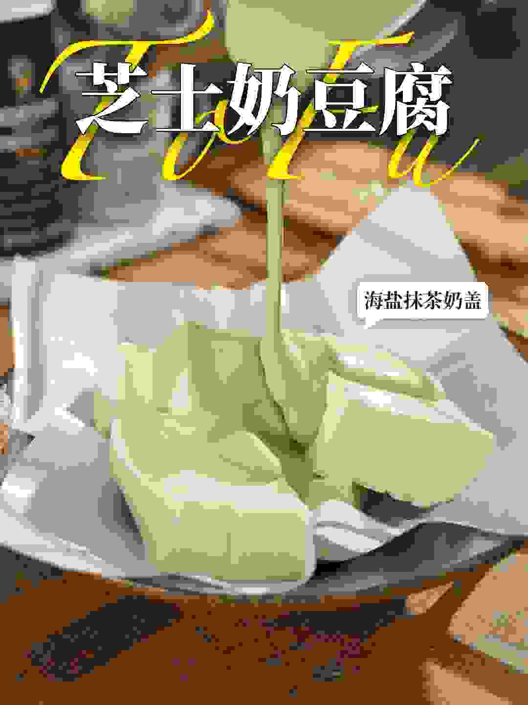 Recipe | 芝士奶豆腐 奶油芝士200g、豆浆550g、淡奶油250g、吉利丁片3片15g、白糖30g、海盐2g(视频里忘加了) 🔘豆浆也可以换成牛奶的哦! Recipe | 海盐抹茶奶盖 牛奶100g、抹茶粉8g、淡奶油150g、海盐2g、白糖30g